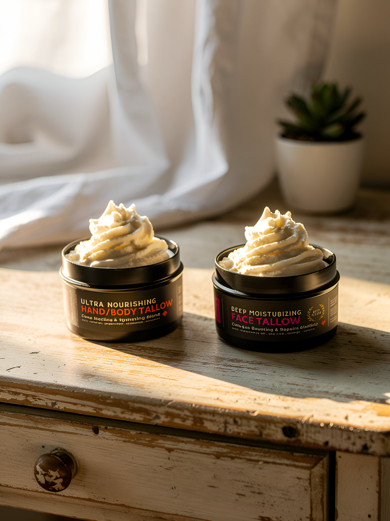 Grass-Fed Beef Tallow: Bioidentical to your skin’s natural oils, locking in hydration and supporting natural repair.