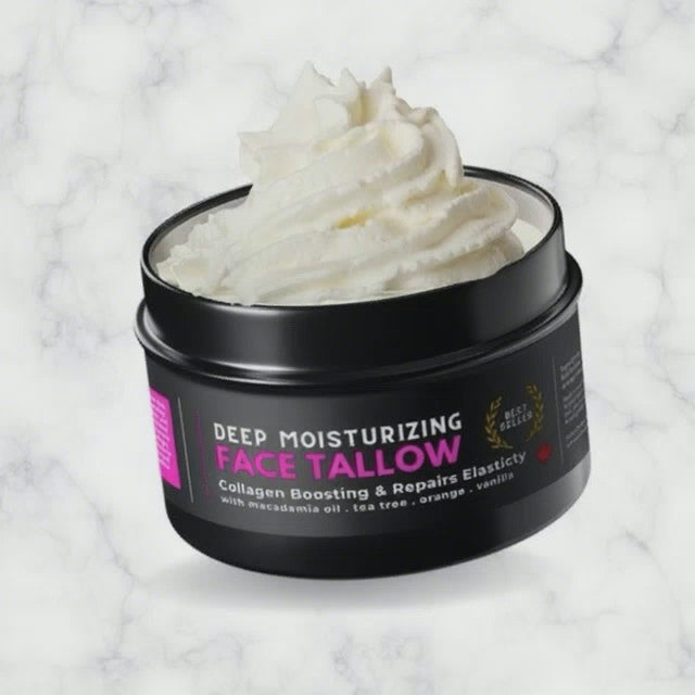 This deep moisturizing "face" tallow is whipped luxury for real skin. Deeply nourishing, protective, and comforting, it glides effortlessly into your skin, leaving it hydrated, soft, and subtly scented with bright orange, warm vanilla, and a hint of tea tree.